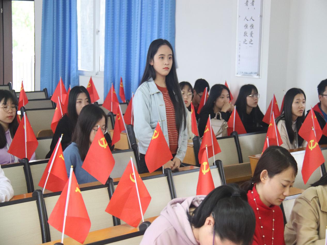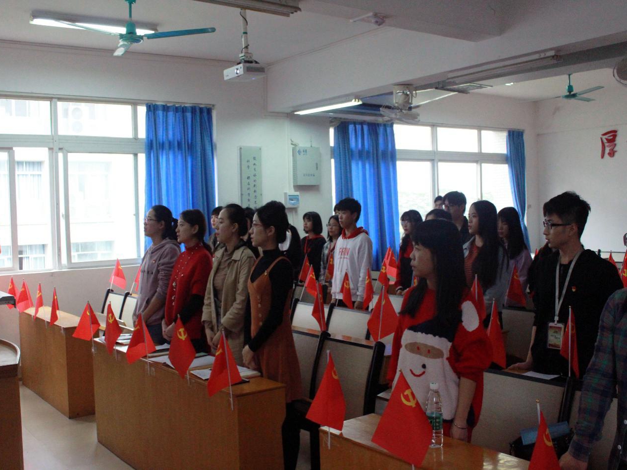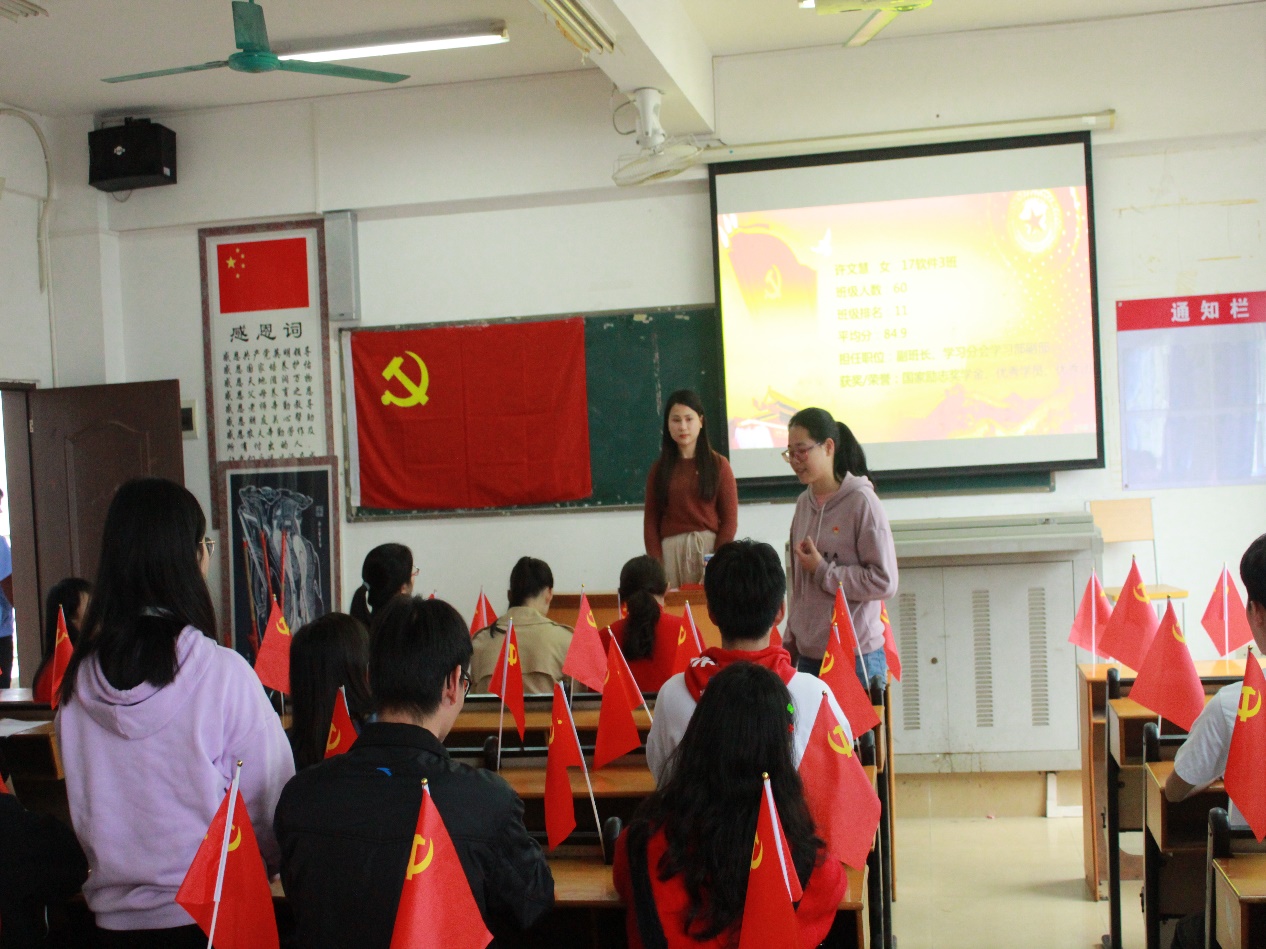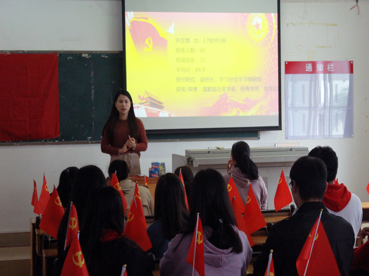本次会议由信息工程学院学生党支部书记龚育思同志主持。会议秉承着“公正、公平、公开”的原则,严格按照各项程序执行。会议伊始,全体与会人员轻身起立奏唱《中华人民共和国国歌》。